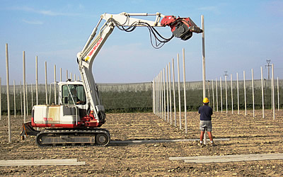 Stefano Querzoli si occupa da anni della posa di pali in cemento e in legno per la palificazione di frutteti e vigneti, della posa di ancoraggi tensionamento cavi per il sostegno delle piante e per il montaggio di reti antigrandine.
